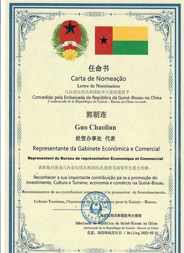 幾內亞比紹共和國駐華大使館任命書